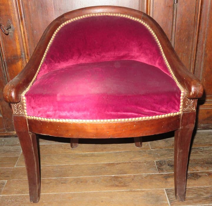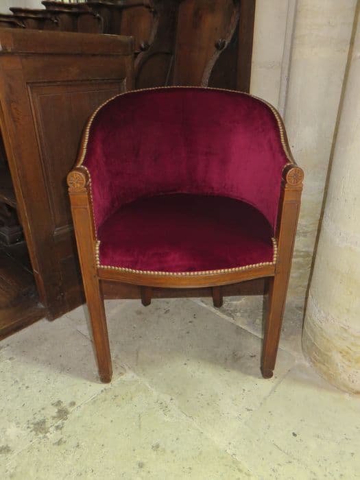 Fauteuil en gondole : noyer ; laine (garniture) : velours simple, rouge.
