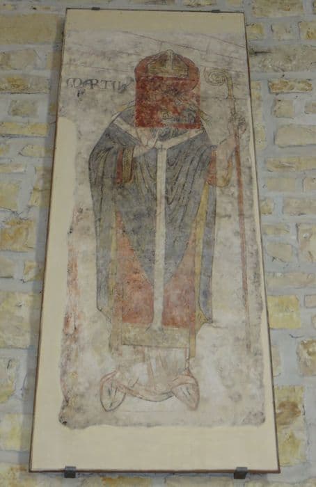 5 peintures monumentales : Coruscule, Deux saints auréolés, Saint Martin en évêque, Lépreux Hugon (le)