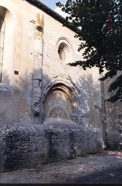 En arc en plein cintre avec chapiteaux historiés.