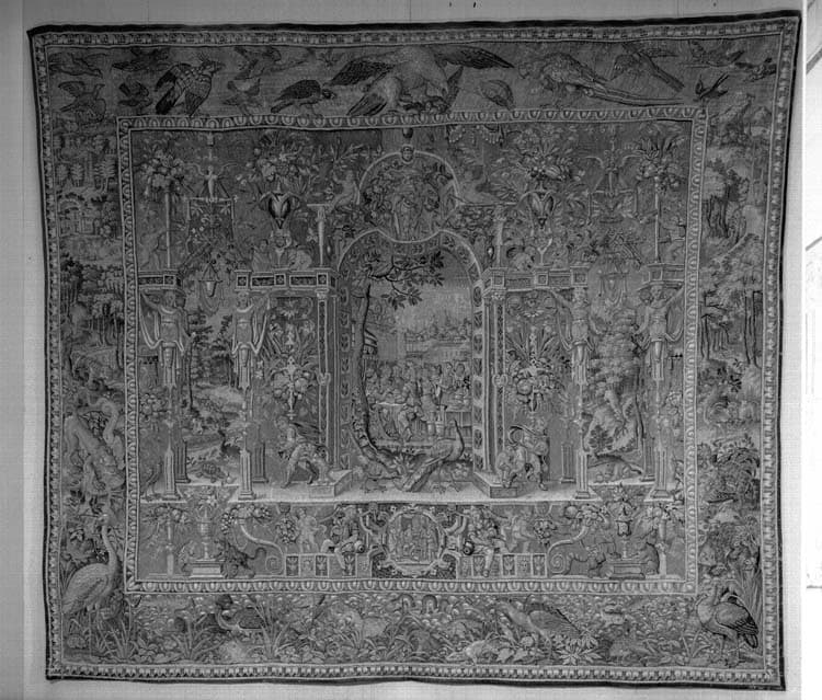 tenture murale (trois pièces) : Arabesques avec bordures de volatiles