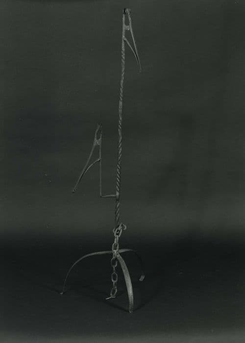 Tige fixée sur un trépied portant deux pinces pour chandelle.