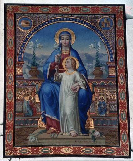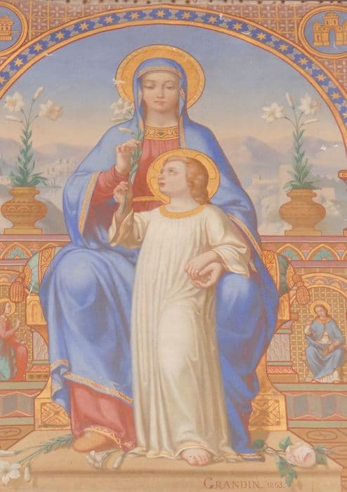 tableau : La Vierge en Majesté présentant à l'Enfant Jésus le lys de l'Annonciation