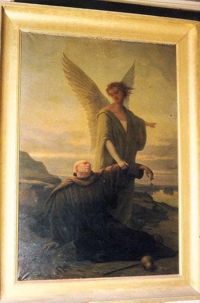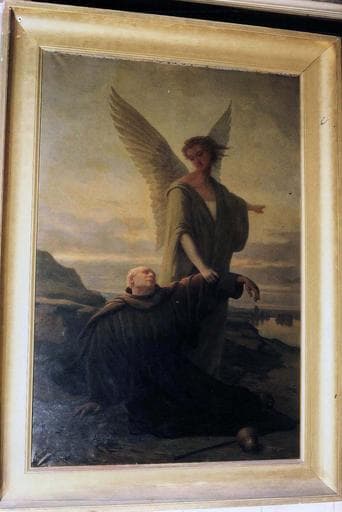 tableau : Un Pèlerin tombant en faiblesse réconforté par un ange, cadre