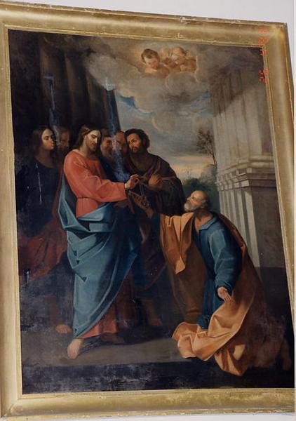Remise des clefs à saint Pierre d'après Guido Reni (tableau à Paris, musée du Louvre).