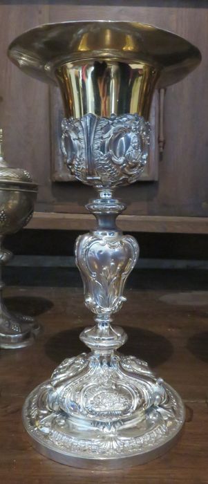 Le calice est formé d'une coupe, une fausse-coupe, une tige et un pied. La coupe est dorée à l'intérieur. La tige est ornée d'un noeud balustre qu'encadrent deux bagues.