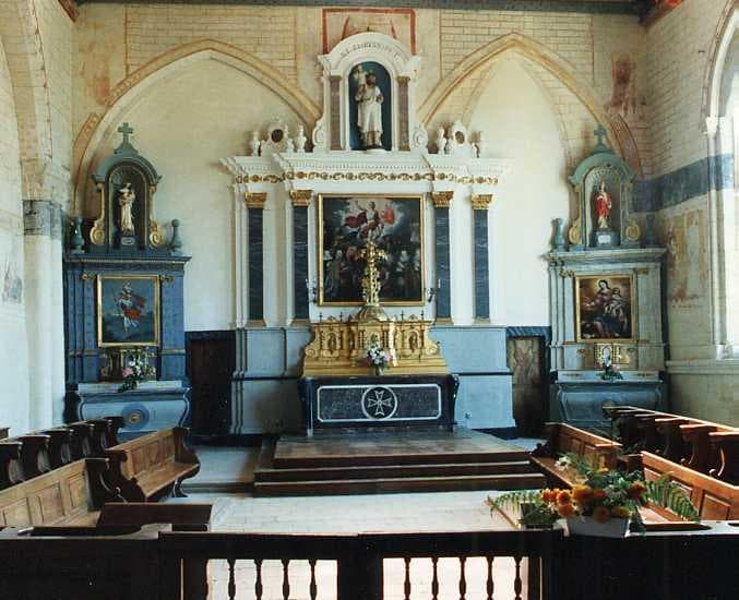 retable central et 2 retables latéraux, 2 reliquaires, tableaux