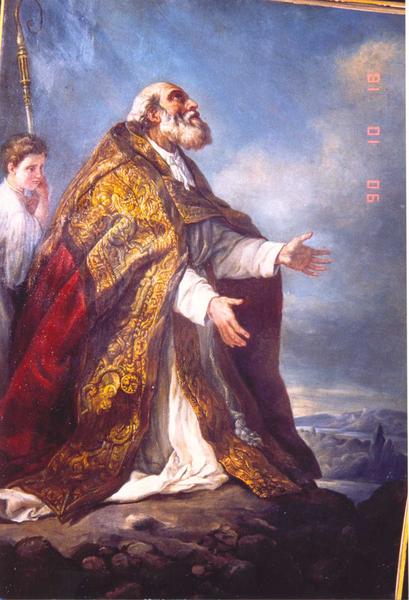 D'après l'Inventaire général, il s'agit d'une scène représentant un evêque en extase.