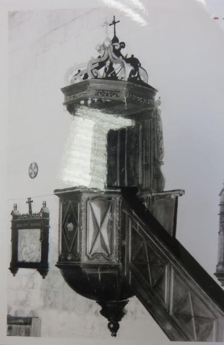 Médiocre (détachement du mur, planches disjointes possible attaque de mérule, aile gauche de l'aigle sous l'abat-voix cassée).