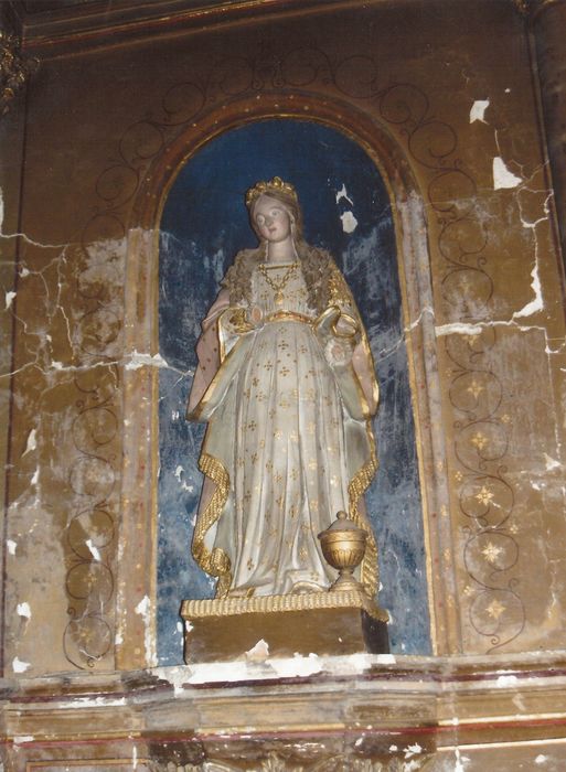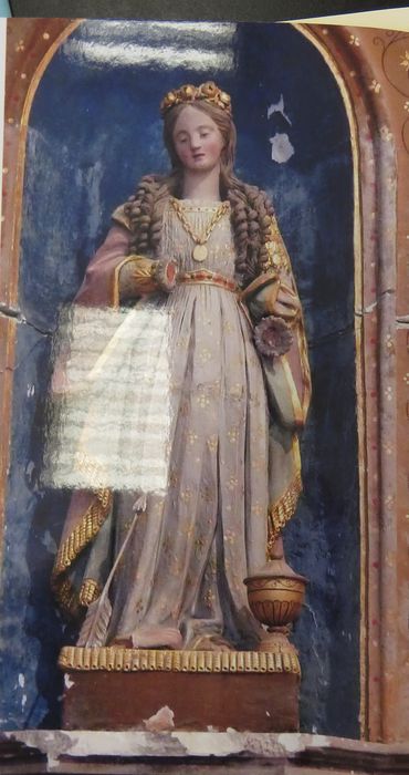 Statue protégée sous l'identification iconographique de : Sainte Madeleine, mais qui représente en réalité, plus probablement, Sainte Philomène.