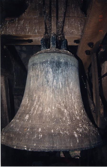 La cloche est écorée de filets et comporte deux lignes d'inscription en caractères gothiques où l'on relève le nom du fondeur. Le battant matricé, les ferrures et la roue de sonnerie datent du siècle dernier.