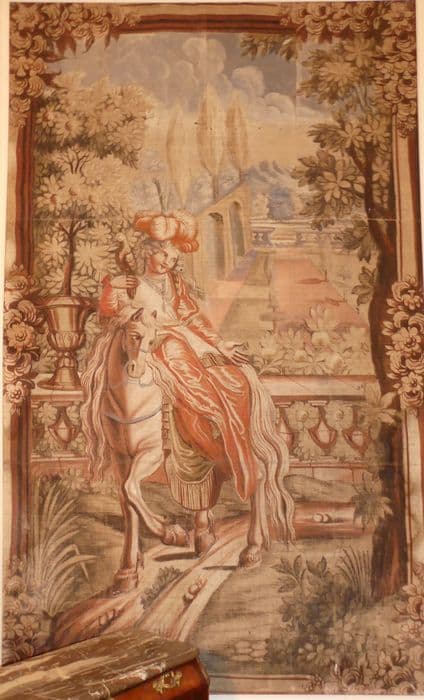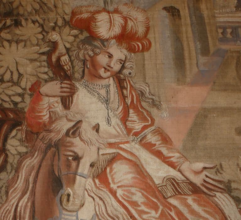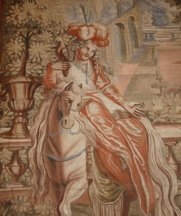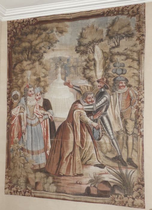 Fragment de carton de tapisserie : Don Quichotte fait demander par Sancho à la duchesse la permission de la voir