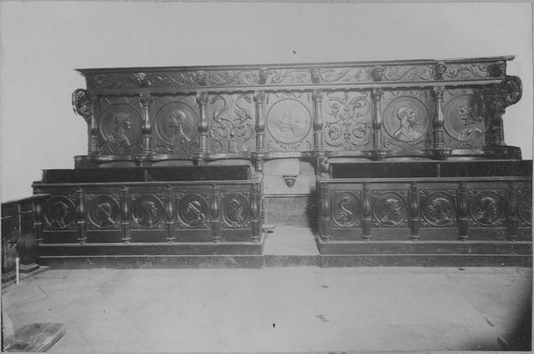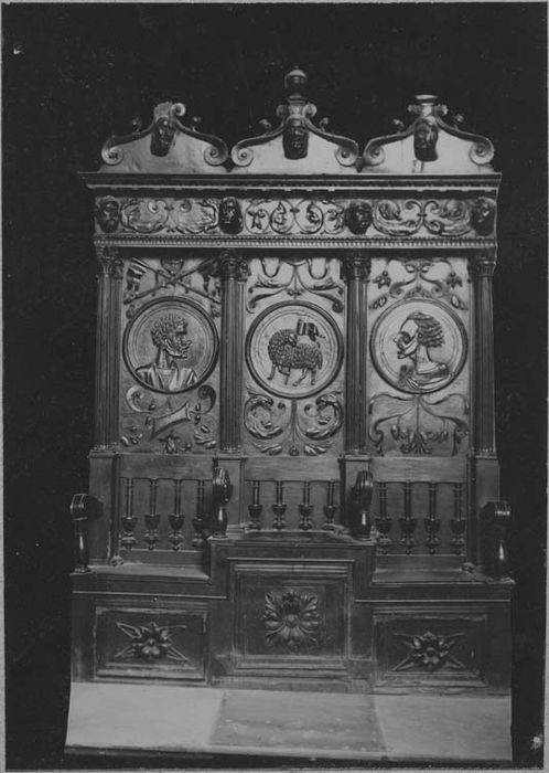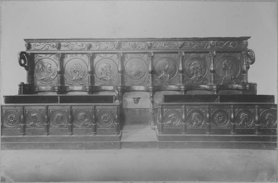 Deux séries de stalles à sept places et une stalle abbatiale à trois places.