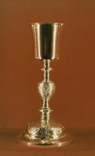 Inscription et date sous le pied : Abbé Gony 1932. Poinçons sur le calice : poinçon de l'orfèvre J.C. Cahier de Paris, argent grosse garantie Paris 1798 1809. Poinçons sur la patène : poinçon de l'orfèvre J.C. Cahier, argent 1er titre Paris 1809 1819, moyenne garantie Paris 1809 1819.