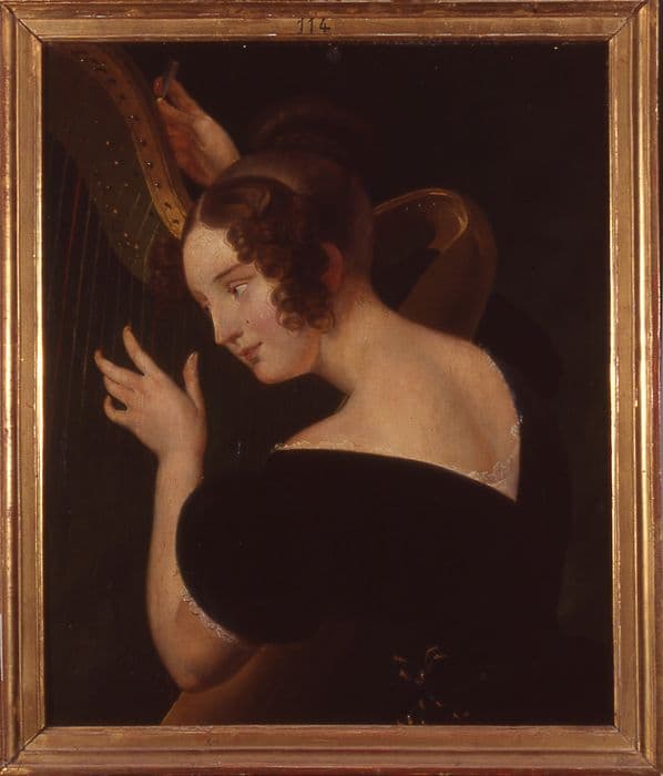 tableau : Jeune femme jouant de la harpe