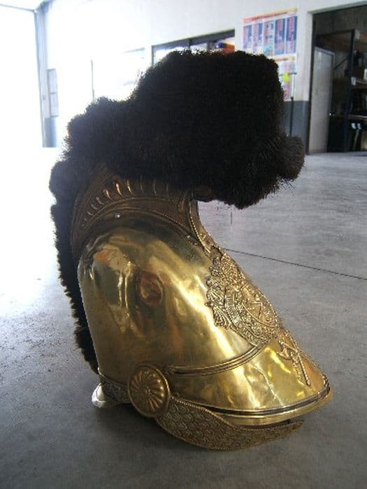 Casque d'apparat de sapeur pompier en laiton poli et crin de cheval.