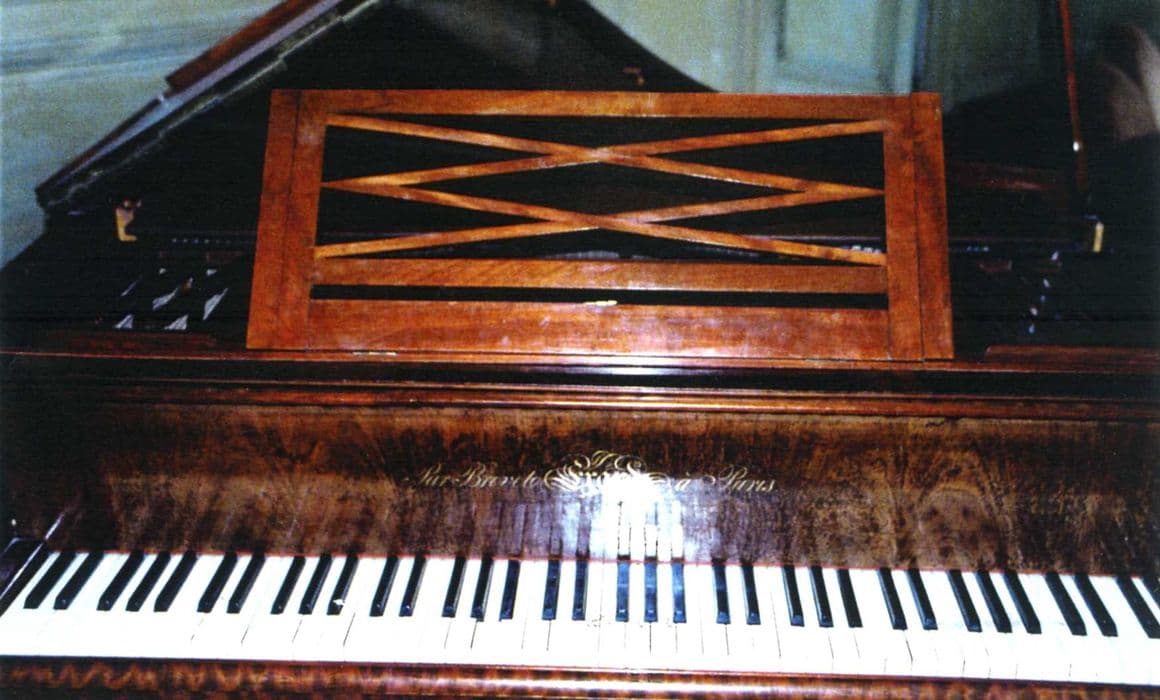 L'étendue du clavier de ce piano est de Do° à La/6. La table porte deux chevalets, avec croisement do dièze/rél. Les premières cordes, une par note, sont filées de do° à fa°; suivent des cordes doubles jusqu'au do dièze, puis 3 cordes par choeur, tout au long.