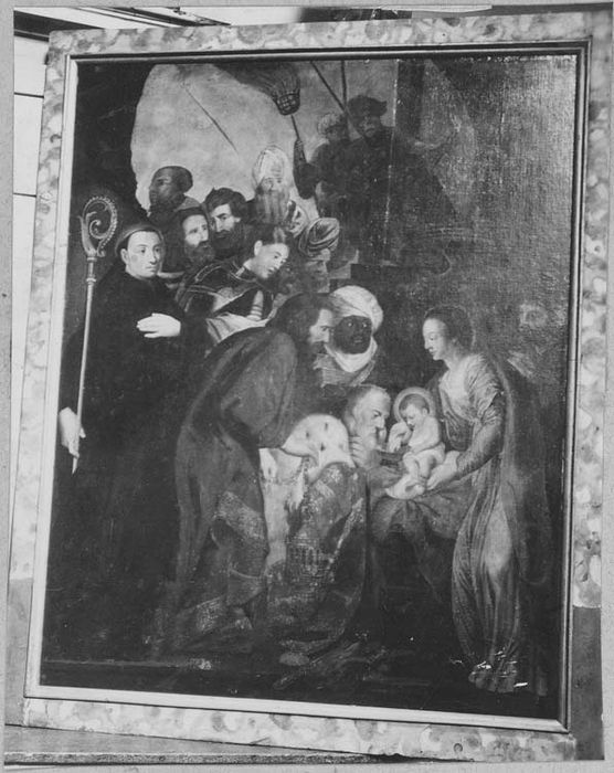 Oeuvre de l'école flamande d'Anvers, anciennement datée du début du 16e siècle. A l'origine, ce tableau était peint sur bois ; il a été mis sur toile au 20e siècle, par les soins des Beaux-Arts.