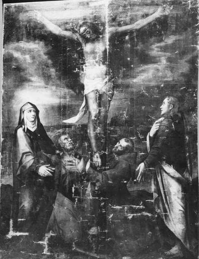 POP | Plateforme ouverte du patrimoinetableau : Le Christ en croix et divers saints personnages