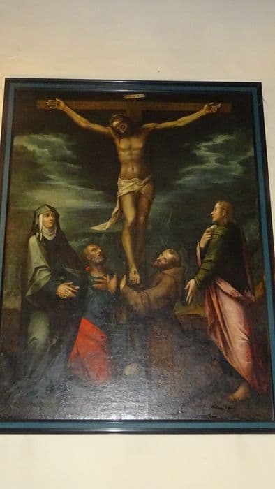 tableau : Le Christ en croix et divers saints personnages