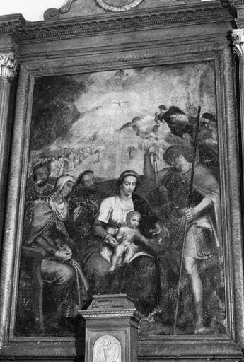 tableau : Vierge à l'Enfant avec saint Michel pesant les âmes, sainte Anne et deux autres saints
