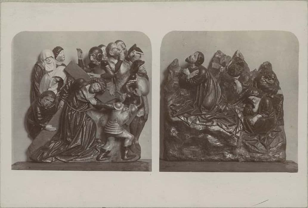Les scènes de la Passion sont sculptées en haut-relief dans des blocs de noyer.