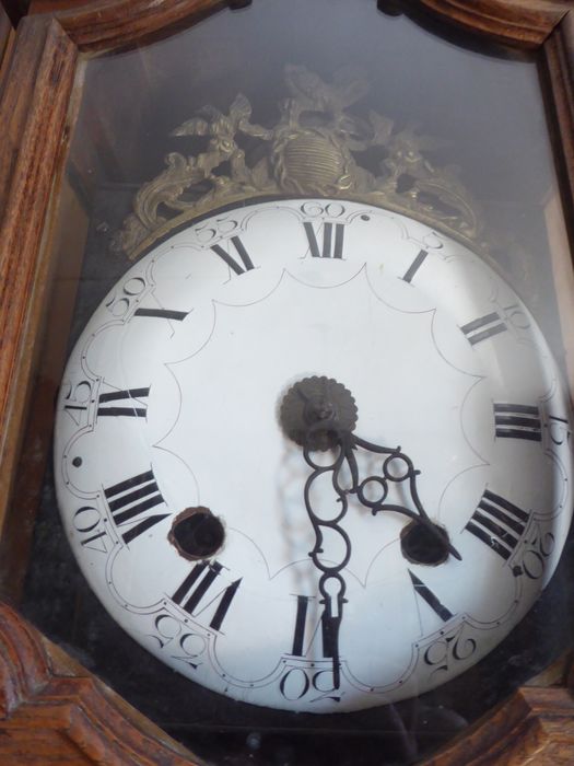 Cette horloge ne présente que des lignes droites, se différenciant ainsi de l'horloge comtoise classique.