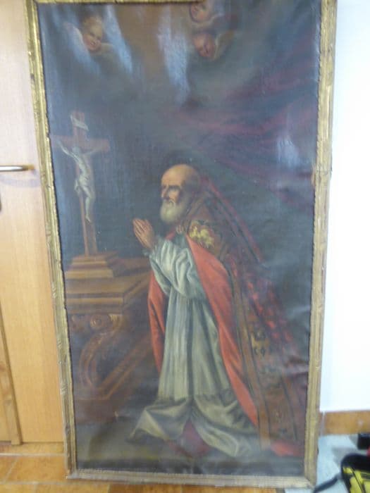 La toile est formé de deux lés. Le tableau représente saint Claude en évêque