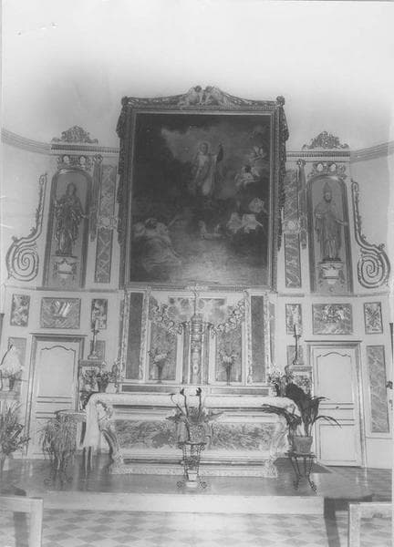 POP | Plateforme ouverte du patrimoineautel, tabernacle, retable, 2 statues, tableau (maître-autel) : Vierge, saint Eutrope, Apparition de saint Vincent de Paul à sept personnages