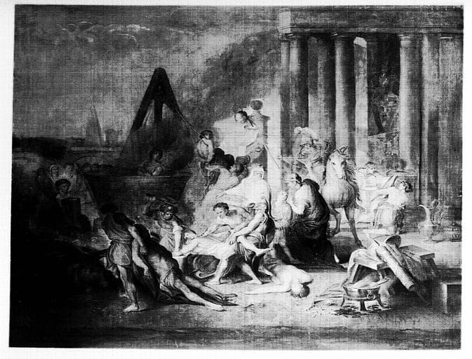 POP | Plateforme ouverte du patrimoinelambris de demi-revêtement, 2 tableaux : Le Massacre des Innocents, Le Massacre des frères Maccabées