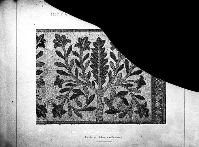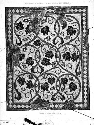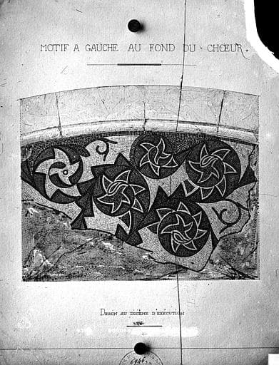 Mosaïque formée de pièces rapportées ; composition en 8 panneaux à décor différent : 6 se répondent 2 à 2 par leurs dimensions et leur emplacement