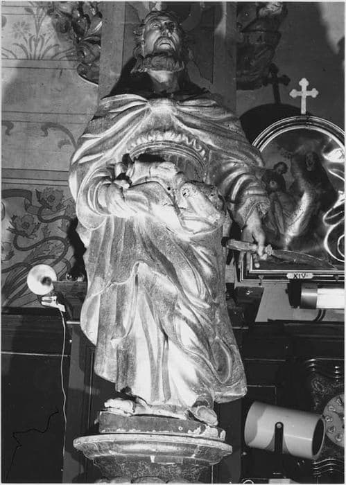 trois statues : Saint Jean-Baptiste et deux Saints Apôtres