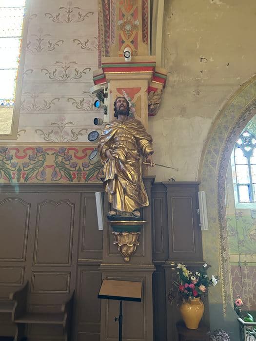 saint Jean-Baptiste : croix ; saint Joseph père nourricier du Christ : lys ; saint Paul de Tarse : épée