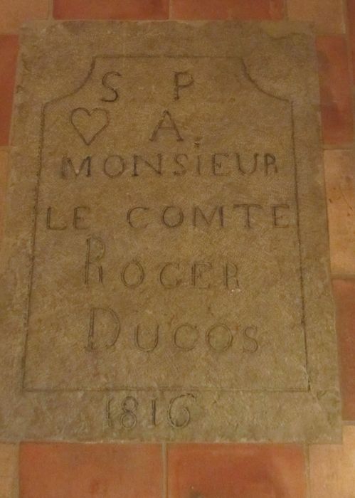 Epitaphe (gravée) : S. P. - (coeur) A - MONSIEUR - LE COMTE - ROGER - DUCOS - 1816.