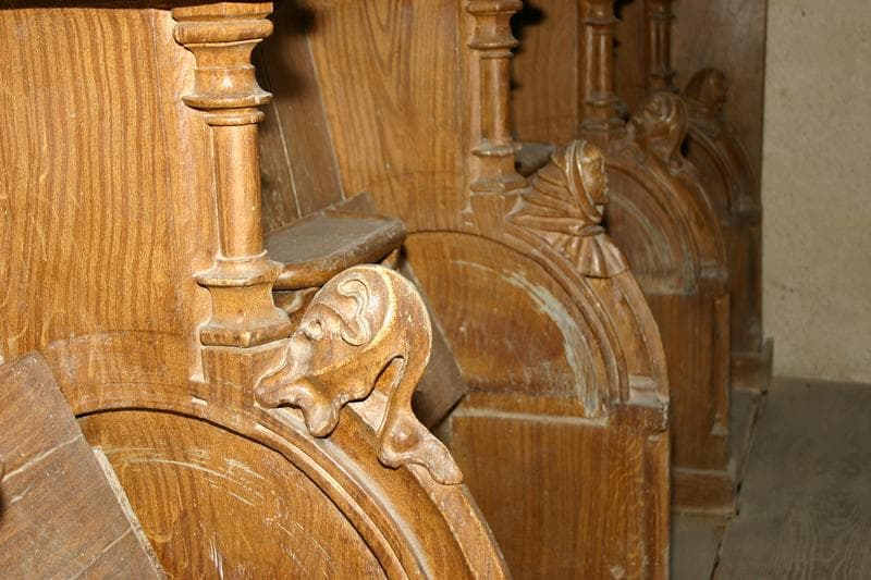 Ces huit stalles sont en deux parties, quatre sont à droite et quatre sont à gauche du passage central.