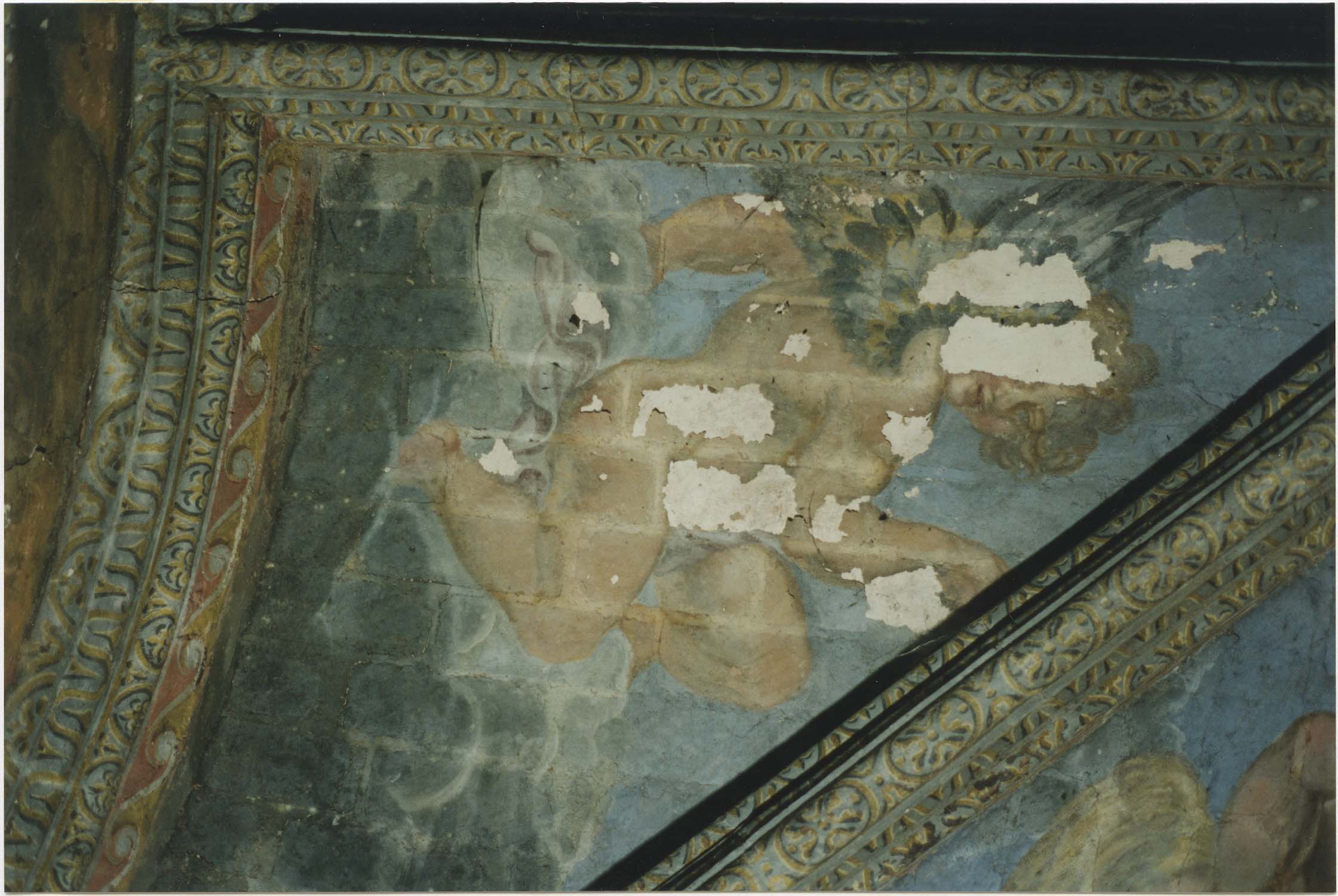 Peintures murales de la chapelle. Peinture à la détrempe sur enduit. Elles s'inscrivent entre les arêtes de deux travées d'ogives.