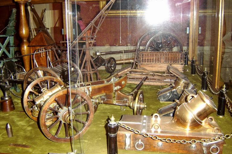 Obusier de campagne 'Le duc de Bourbon' ; affût dit 'Le Grand Condé' ; pièce de siège dit 'Le Maréchal de Saxe' ; affût de canon ; triqueballe de place ; artilleur de campagne ; guérite ; artilleur de marine ; grue miniature ; chèvre de levage pour affût