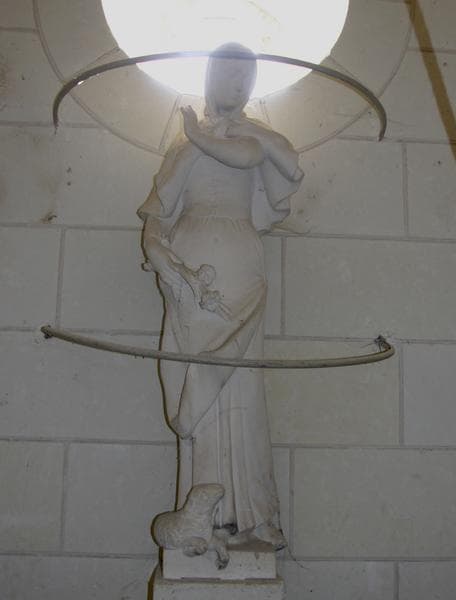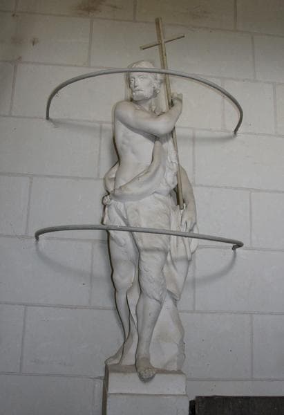 quatre statues: Sainte Barbe, saint Jean-Baptiste, saint Hilaire et sainte Germaine de Pibrac
