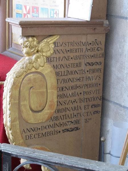 Siège à dossier haut et deux parcloses, le tout surmonté d'un dais en fronton ; prie-Dieu à l'avant.