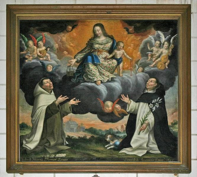 tableau : Institution du Rosaire avec saint Dominique et saint Simon Stock