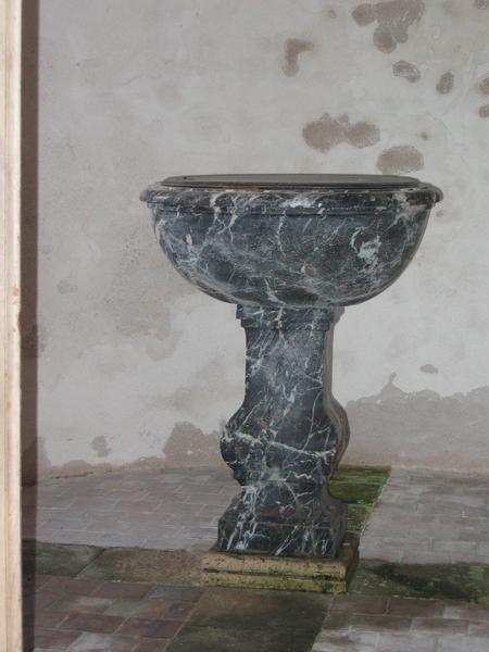 Fonts baptismaux en marbre noir veiné.