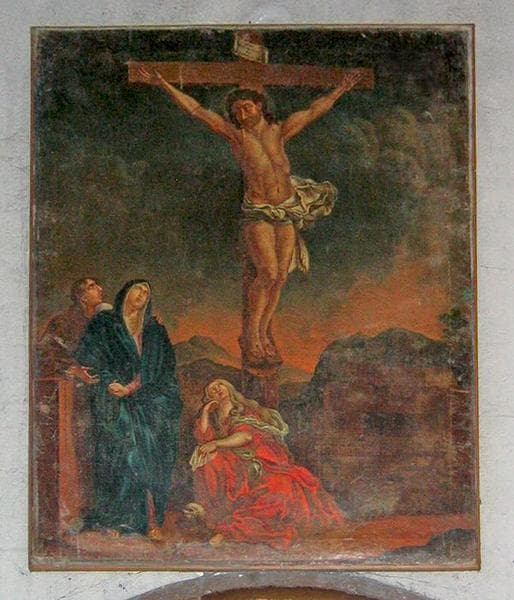 tableau : Christ en croix avec la Vierge, saint Jean et sainte Marie-Madeleine