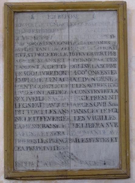 inscription funéraire de Charles Pierre Huet de la Poirière de Vendôme
