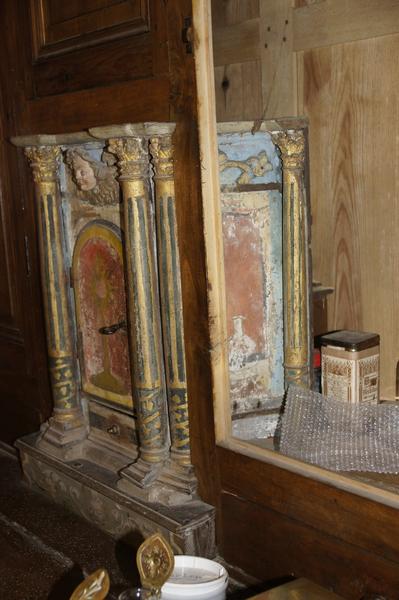 Ancien tabernacle intégré dans le meuble de sacristie.
