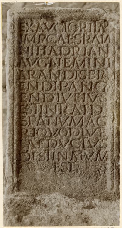 POP | Plateforme ouverte du patrimoinesculpture : inscription romaine constituant un périmètre de protection autour de l'aqueduc conduisant à Lyon les eaux du Gier