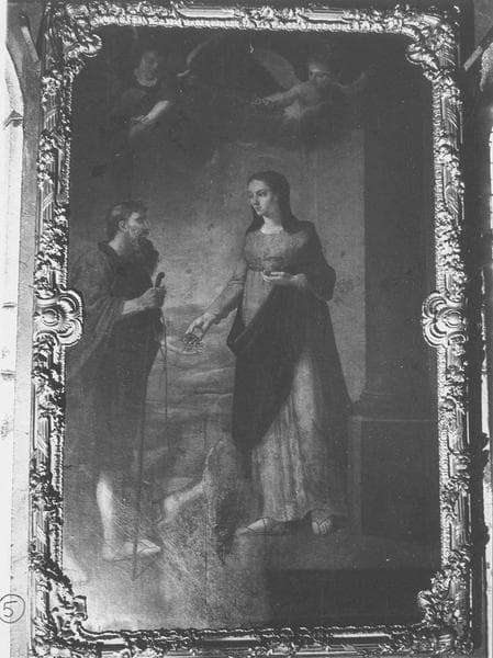tableau, cadre : Sainte donnant l'aumône à un pèlerin