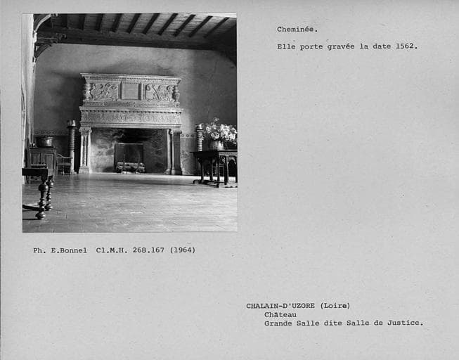 L'ensemble est constitué de la cheminée et la porte Renaissance de la grande salle au rez-de-chaussée, de la cheminée de la bibliothèque au rez-de-chaussée, et de la cheminée du petit salon provenant du château de Goutelas, également au rez-de-chaussée.