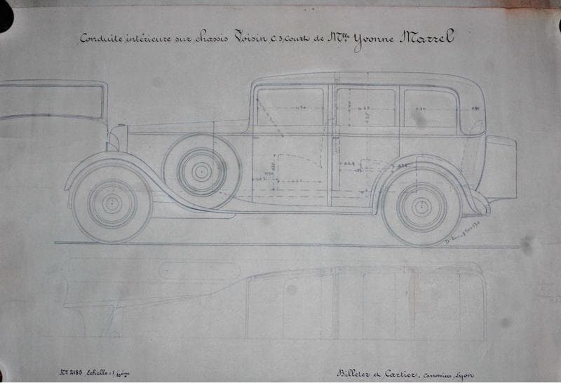voiture automobile d'Yvonne Marrel : limousine Voisin type C3, n° d'immatriculation 1927 EB 69