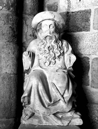 saint Jacques, assis, chapeau : ornement : coquille Saint-Jacques