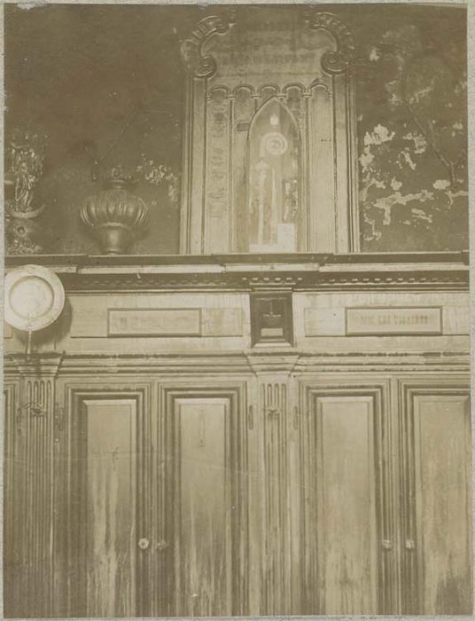 armoiries non identifiées : trois fleurs de lis : deux en chef une en pointe. timbre : couronne