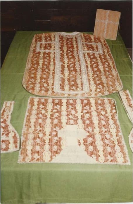 ensemble d'ornements liturgiques (chasuble, étole, manipule, bourse, voile du calice)